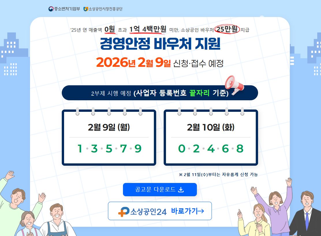 원활한 신청을 위해2월 9일~10일은 2일간은 홀짝제(2부제)로 운영되니 본인의 사업자번호 끝자리를 꼭 확인하세요!